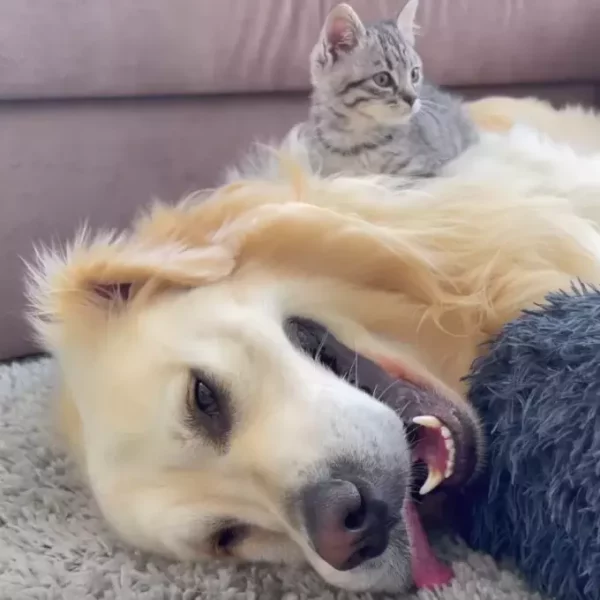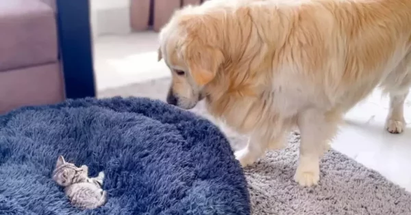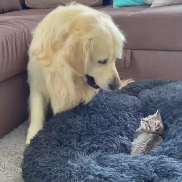La rivalité entre chiens et chats est bien connue, et elle semble être inscrite dans leur ADN depuis toujours. Cette situation ne semble pas près de changer. Alors, imaginez la réaction d’un chien, même s’il appartient à la race la plus douce, lorsqu’il découvre que son lit confortable est occupé par un petit chat gâté…