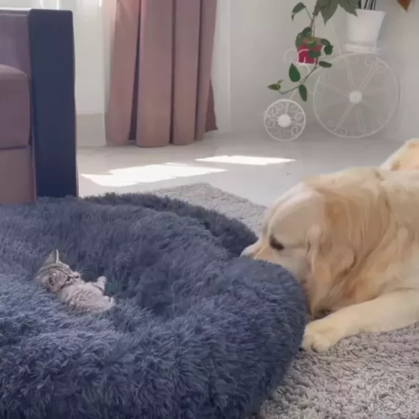 C’est exactement ce qu’a vécu récemment un adorable Golden Retriever. Dans une vidéo devenue virale, Bailey se précipite vers son immense lit douillet pour constater que son coin de détente a été envahi par un gentil petit intrus. Comme n’importe qui dans sa situation, le pauvre chien essaie d’abord de résoudre le problème avec diplomatie, même si la lutte est bien réelle.