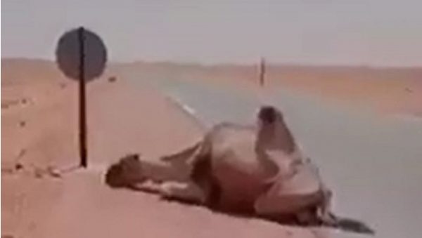 Un chauffeur de camion sauve un dromadaire sur le point de mourir dans le désert du Sahara.