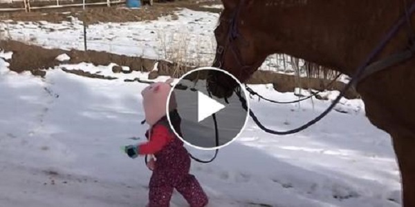 Ces deux-là, une amitié indéfectible ! Emma, une petite fille de deux ans, se montre d’une aide précieuse en ramenant son cheval, Cinnamon, à la maison. Sa douceur et sa confiance sont tout simplement adorables, tandis que son mustang fait preuve d’une grande patience à son égard.