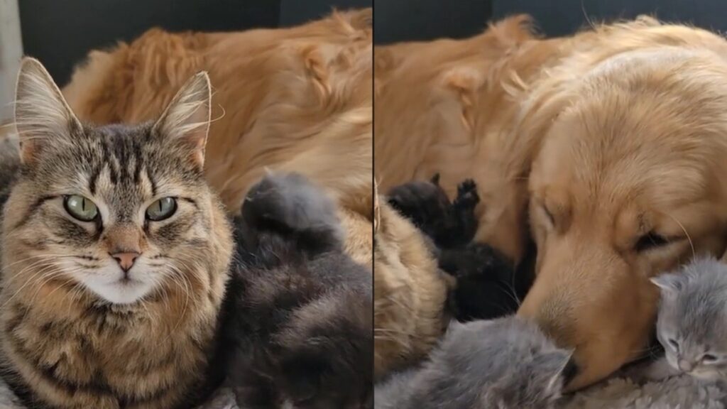 Si vous êtes à la recherche d’une histoire touchante d’amitié inter-espèces, ne cherchez pas plus loin que Dasher le Golden Retriever et sa meilleure amie, une chatte tabby. Lorsque la chatte a donné naissance à quatre chatons, Dasher s’est porté volontaire pour prendre le rôle de papa de substitution. Une vidéo de leur interaction adorable a été partagée sur TikTok, émouvant de nombreux internautes et devenant rapidement virale.